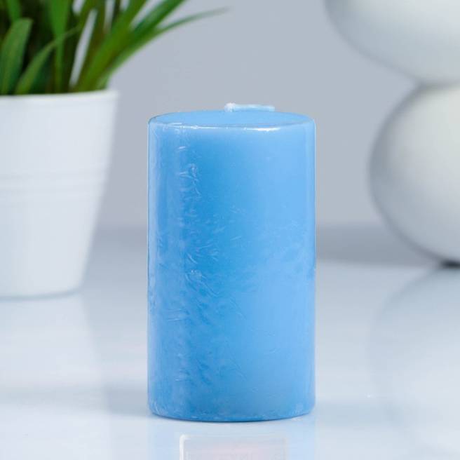 Свеча-цилиндр, парафиновая, голубая