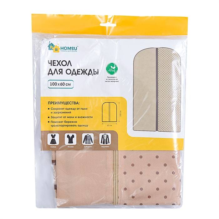 Чехол из спанбонда, застегивается на молнию, имеет отверстие для вешалки. Защищает одежду от пыли, загрязнений и насекомых. Удобен для транспортировки одежды. Выполнен в универсальном дизайне, благодаря чему гармонично впишется в любой интерьер.