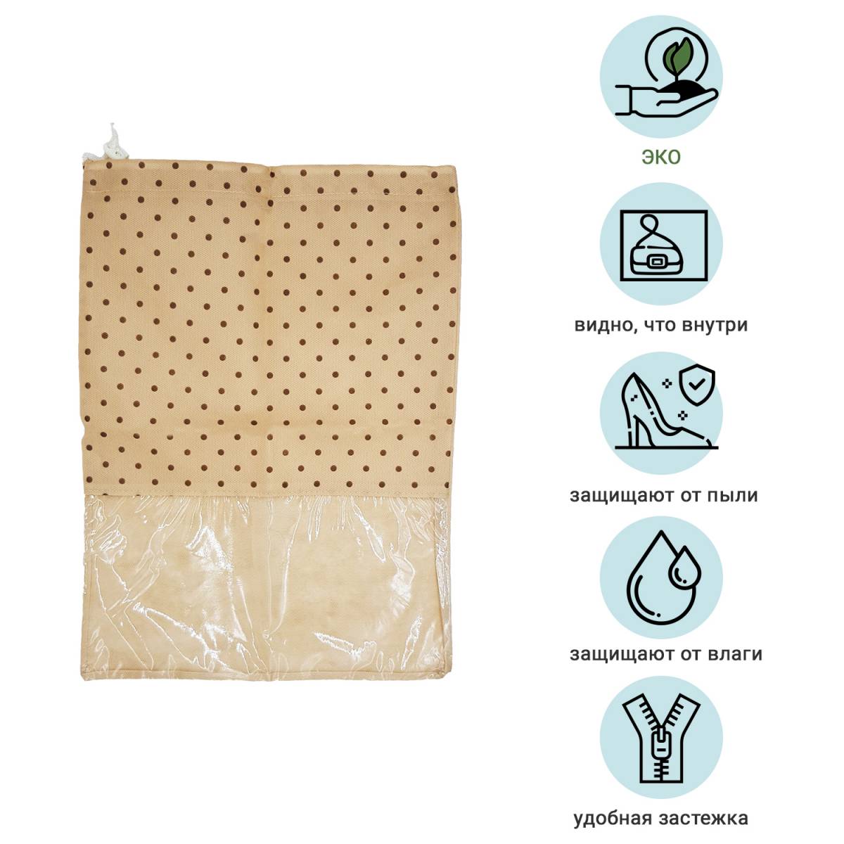 Легкий универсальный чехол, который подойдет для хранения или транспортировки обуви и вещей. Он надежно защитит содержимое от грязи, пыли и других внешних факторов. Благодаря прозрачной вставке, вы без труда узнаете, что внутри. Плотно закрывается на шнур. Выполнен в универсальном цвете.
