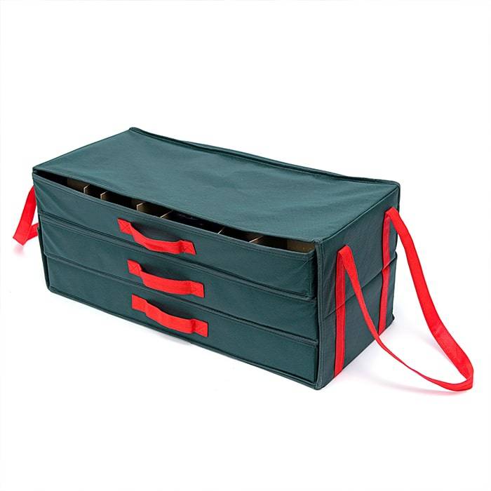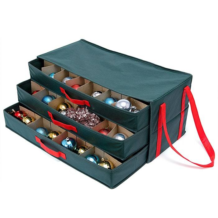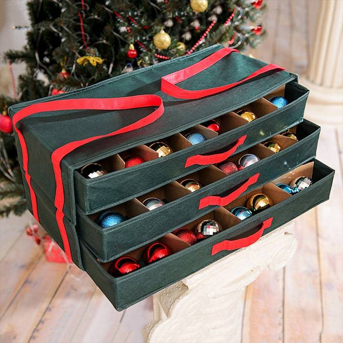 Вместительный органайзер для ёлочных игрушек New Year - новинка на Российском рынке. Ораганайзер состоит из 3-х ящиков, каждый из которых оснащен регулируемыми картонным делениями. В этот органайзер вполне можно уместить все елочные украшения, которые имеются в доме.