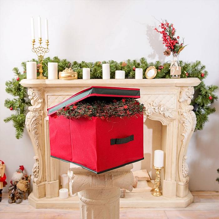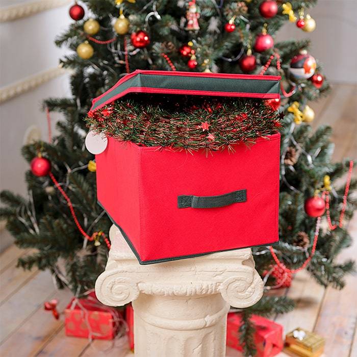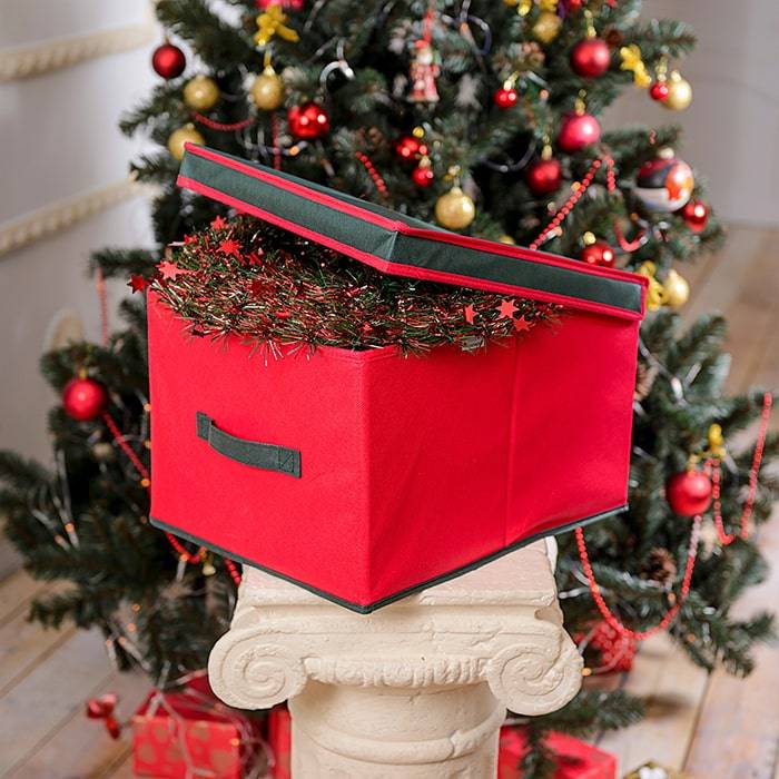 Коробка с крышкой оптимального размера 30х40х25 см, оснащена делениями из картона, прекрасно подходит для хранения ёлочных шаров и других украшений. Выполнена в традиционной новогодней расцветке.