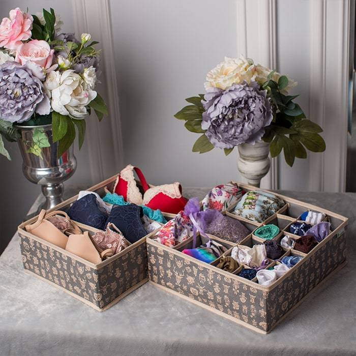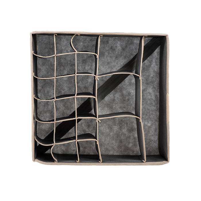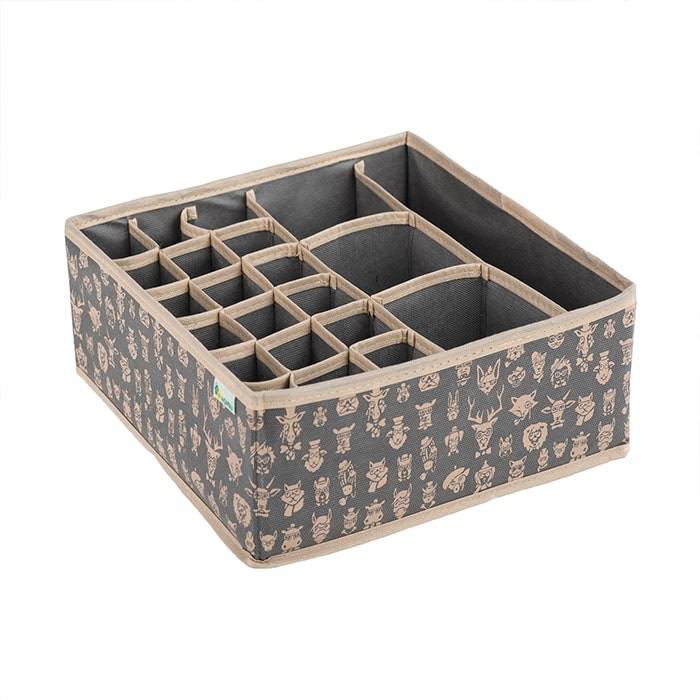 Универсальный мульти-органайзер имеет 3 вида секций разного размера. Идеально подходит для хранения нижнего белья, носков, колготок и аксессуаров. Благодаря такому органайзеру вы наведете порядок и оптимизмируете пространство в гардеробе. Выполнен в трендовом сером цвете.