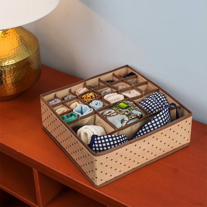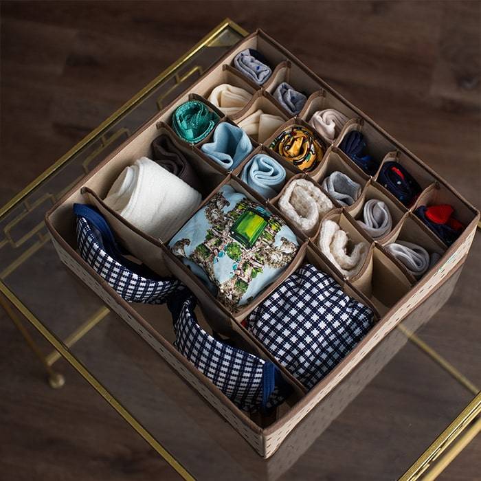 Как же сложно бывает навести, а главное, поддерживать порядок среди мелких предметов одежды, таких как белье, платочки, шарфы и ремни. Сложенные в стопки на полках, они рассыпаются, в комоде занимают целый ящик, а найти среди них нужный, особенно в утренней суматохе – серьезная проблема. Да и уборку после этого можно начинать сначала. Мульти-органайзер для нижнего белья и аксессуаров станет здесь настоящим спасением.