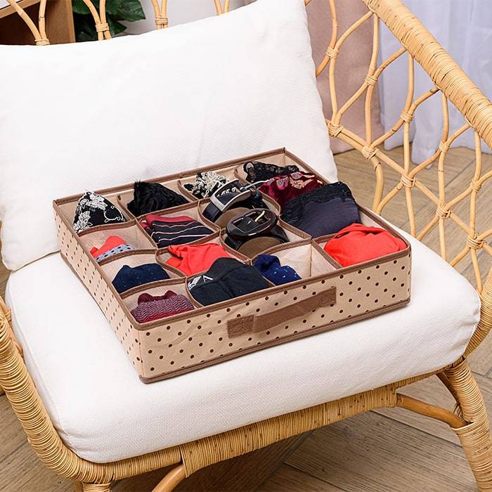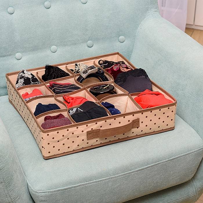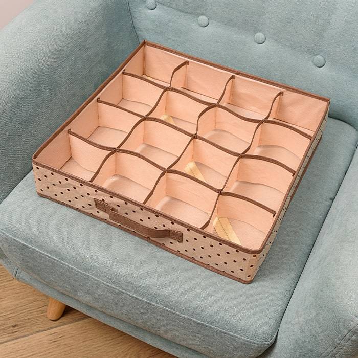Вам надоело каждое утро перебирать стопки белья на полке, чтобы найти нужное, или вы устали отыскивать пару к любимым носкам в коробке или пакете? В 16 отдельных ячейках органайзера можно разместит множество некрупных предметов одежды или аксессуаров, причем все они будут видны и легко доступны. А сам органайзер прекрасно помещается в шкаф для одежды или комод.