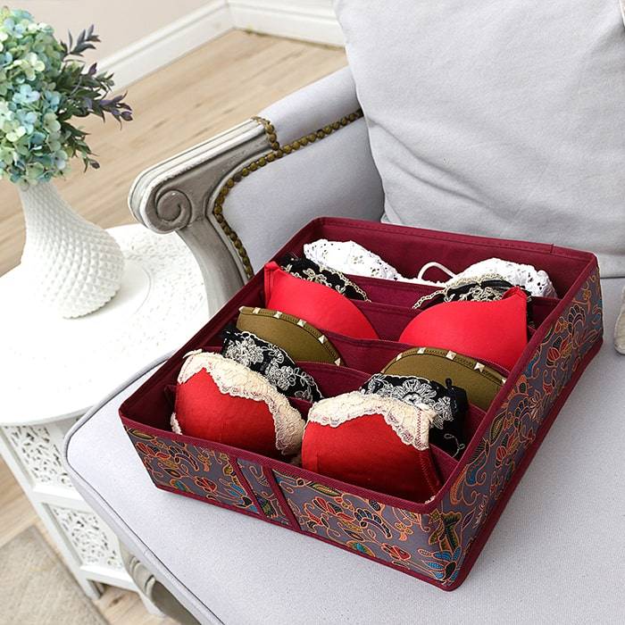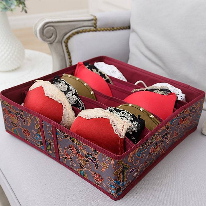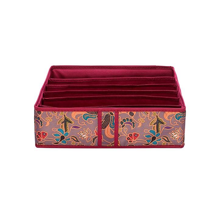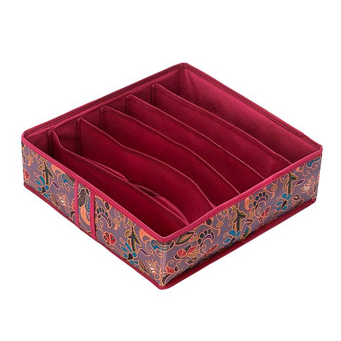 Квадратный и плоский органайзер имеет 6 раздельных ячеек размером 32х5см, очень удобен для хранения вещей среднего размера в вашем ящике или на полке. Идеально для бюстгальтеров, нижнего белья и других вещей ежедневного пользования. Имеет жесткие борта, что является гарантией сохранности вещей. Подходит в шкафы Били от Икея.