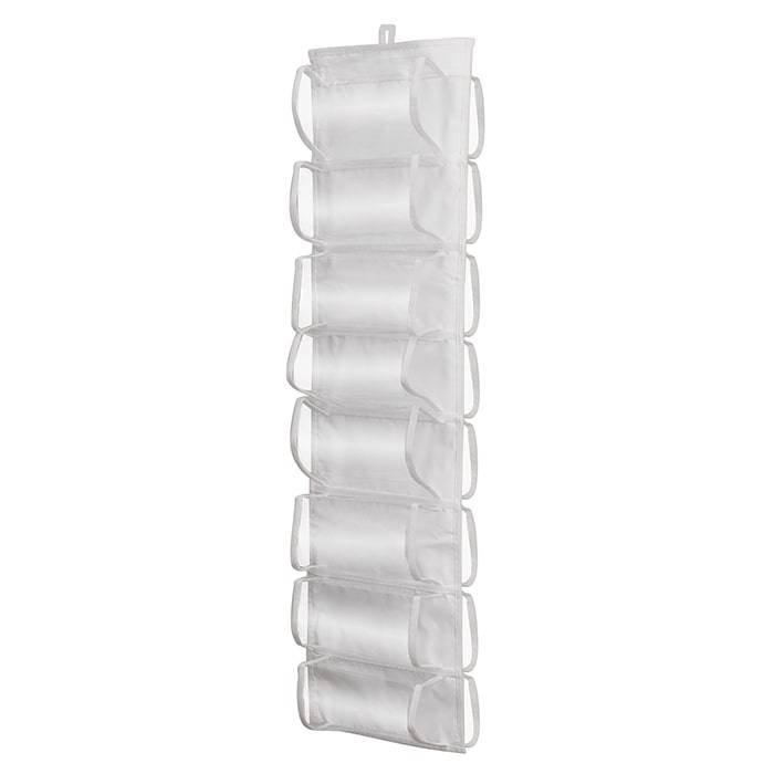 Белый цвет является символом чистоты и порядка, поэтому органайзер для мелочей «White» поможет вам не только аккуратно упаковать и хранить их, но и создаст ощущение легкости и свежести. В восемь объемистых кармашков без труда уместятся все ваши колготки, шарфы и прочие некрупные предметы гардероба, обычно занимающие немало места на полках.