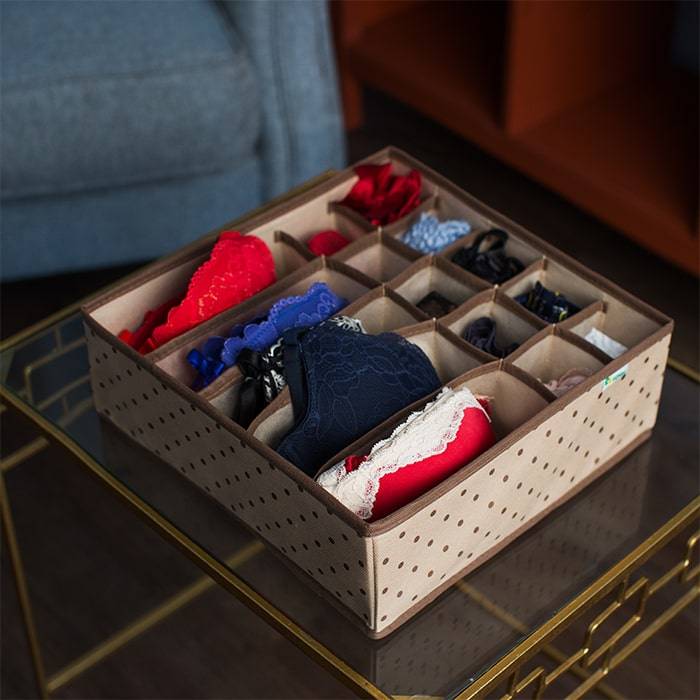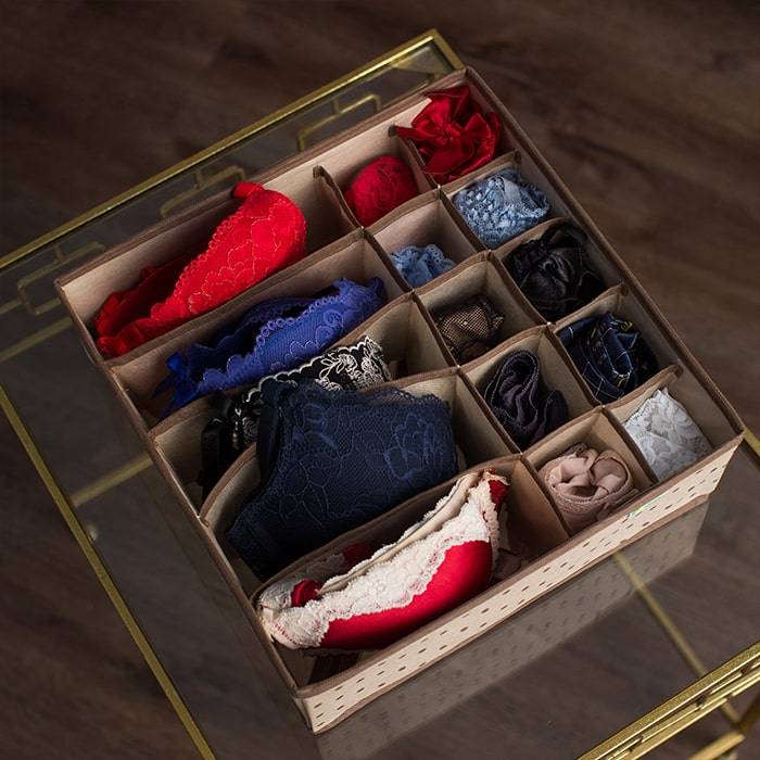 Стопки нижнего белья на полках платяного шкафа обычно рассыпаются, крючки бюстгальтеров могут зацепиться за деликатное нежное кружево и повредить его, а найти в утренней спешке нужный комплект бывает затруднительно. К тому же, после поисков чаще всего придется заново наводить порядок. Решить эту проблему раз и навсегда поможет органайзер для нижнего белья и бюстгальтеров.
