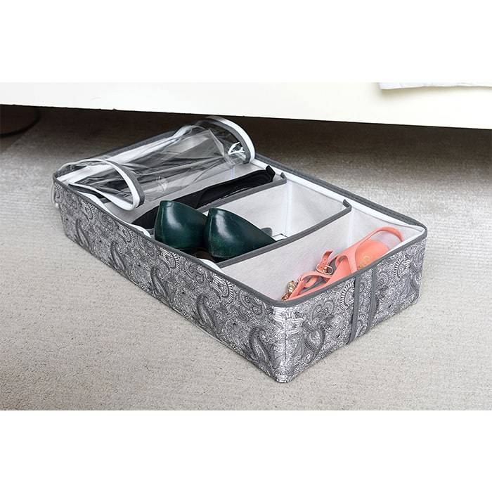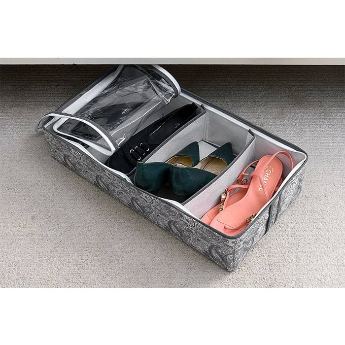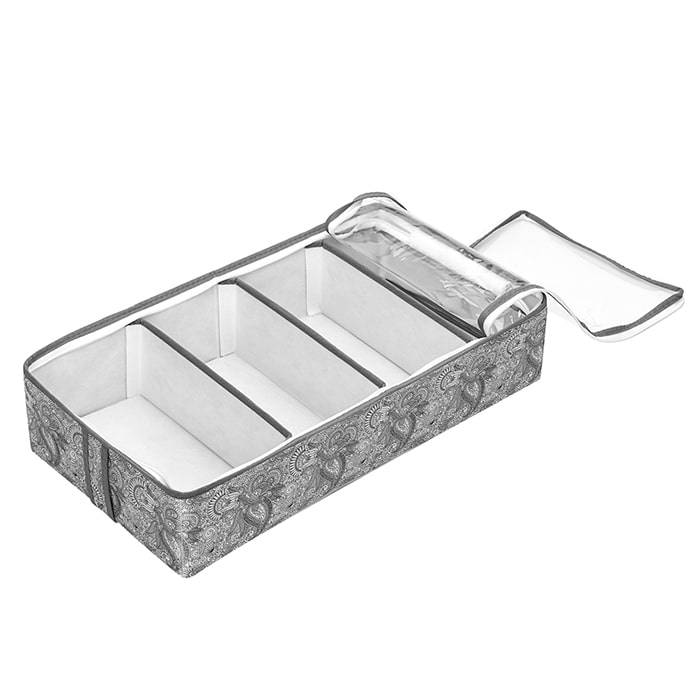 Органайзер из линейки «Grey Flower» пригодится вам как для наведения порядка в хранении сезонной обуви в домашней кладовой, так и при переезде на дачу или на новую квартиру. Четыре вместительных бокса, закрывающиеся сверху прозрачным чехлом позволят аккуратно и бережно упаковать туфли и ботинки и предохранить от повреждений, что существенно увеличит срок их службы.