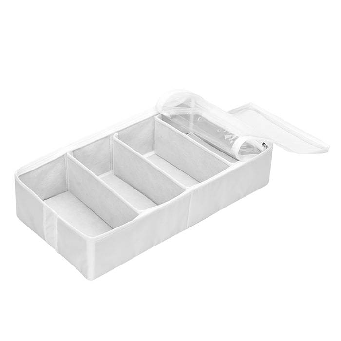 Больше всего места в прихожей обычно занимает обувь. Справиться с этой проблемой, а также сберечь любимые туфли от грязи, пыли или повреждений поможет удобный и практичный органайзер. Он дает возможность своевременно убрать на хранение четыре пары обуви, упаковав их в отдельные вместительные ячейки, плотно закрывающиеся прозрачным чехлом.