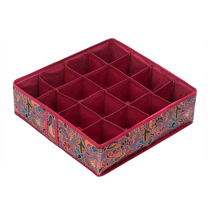 Ваша семья еще не в партии «разноносочников»? Тогда вам необходим большой органайзер «Madeira», в 16-ти ячейках которого с легкостью разместятся собранные по парам носки. А может быть вы сложите сюда коллекцию галстуков супруга или используете его для того, чтобы наконец-то аккуратно разобрать любимую бижутерию. Уверены, пустым этот прекрасный органайзер стоять не будет.