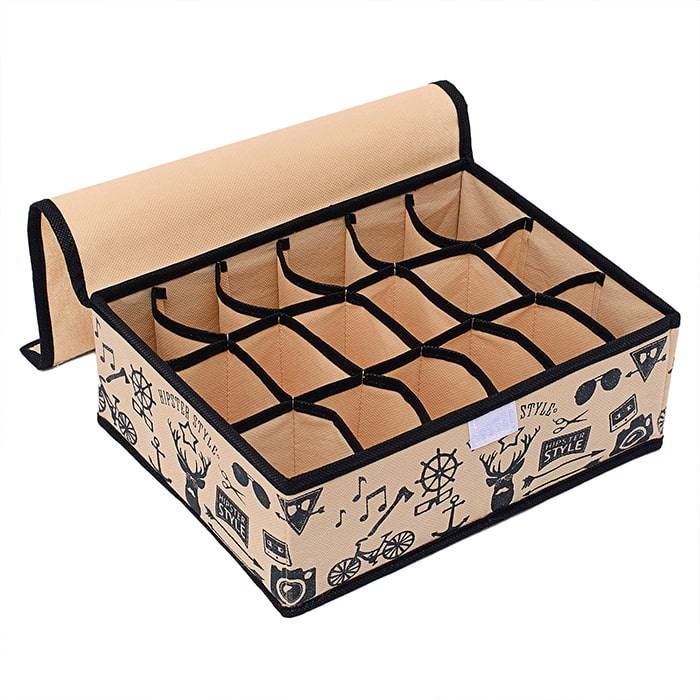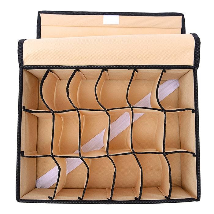 Прямоугольный и плоский органайзер имеет 18 раздельных ячеек размером 7Х5см с крышкой очень удобен для хранения мелких вещей в вашем ящике или на полке. Идеально для носков, платков, галстуков и других вещей ежедневного пользования. Имеет жесткие борта, что является гарантией сохранности вещей. Подходит в шкафы Били от Икея.