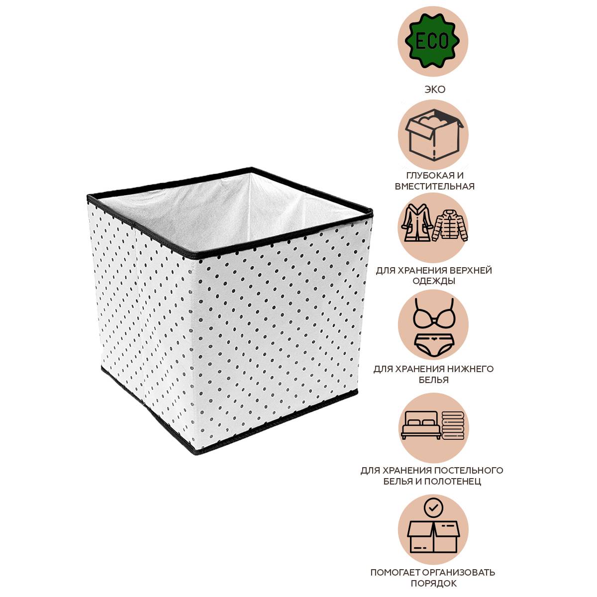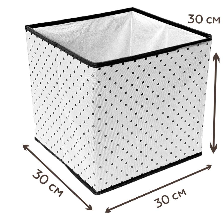 Универсальная коробка для хранения вещей. Прекрасно подойдет для хранения одежды, полотенец, игрушек или разных домашних принадлежностей. Выполнена в белом цвете, благодаря чему гармонично впишется в любой интерьер и создаст ощущение чистоты и уюта. Выполнена из спанбонда. Это экологический, безопасный и не аллергенный материал. Вес: 526 г Материал: спанбонд, картон Размер упаковки: 32х34х2 см Размер товара: 30x30x30 см Страна: Россия
