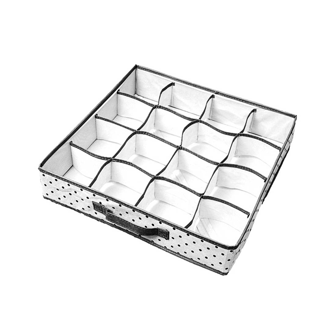 Вместительный органайзер для вещей на 16 ячеек прекрасно подойдет для хранения нижнего белья, носков и других небольших вещей. Изготовлен из экологического материала - спанбонда, стенки органайзера держат форму за счет картонного каркаса, благодаря им изделие прослужит длительный срок службы. Выполнен в белом цвете, что создат чувство чистоты и свежести в доме. Вес: 200 г Материал: спанбонд Размер упаковки: 40х14х2 см Размер товара: 40х40х9 см Страна: Россия
