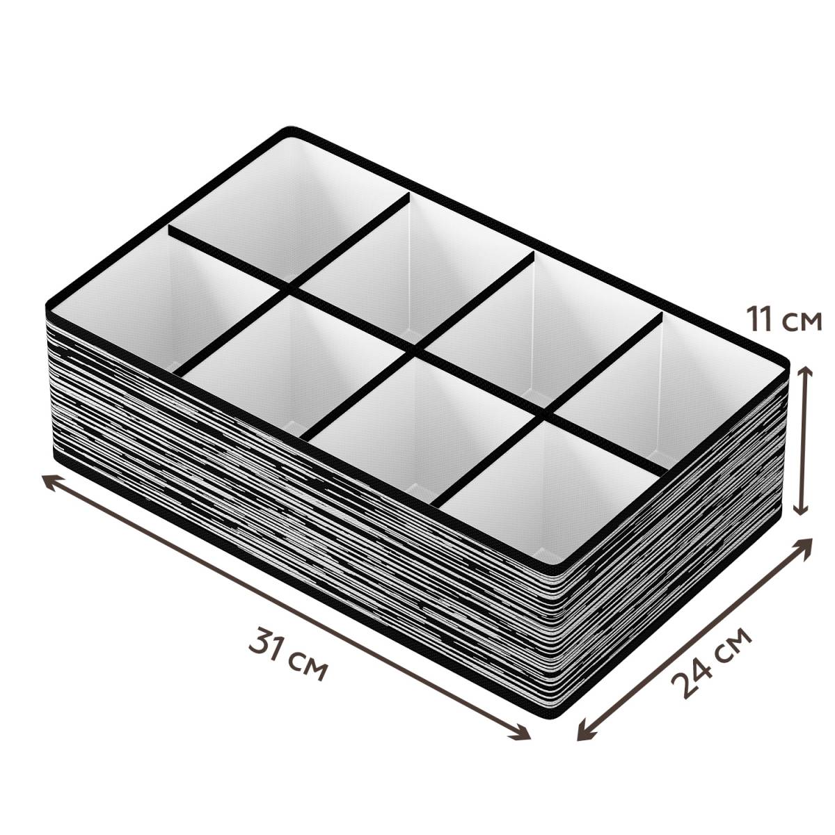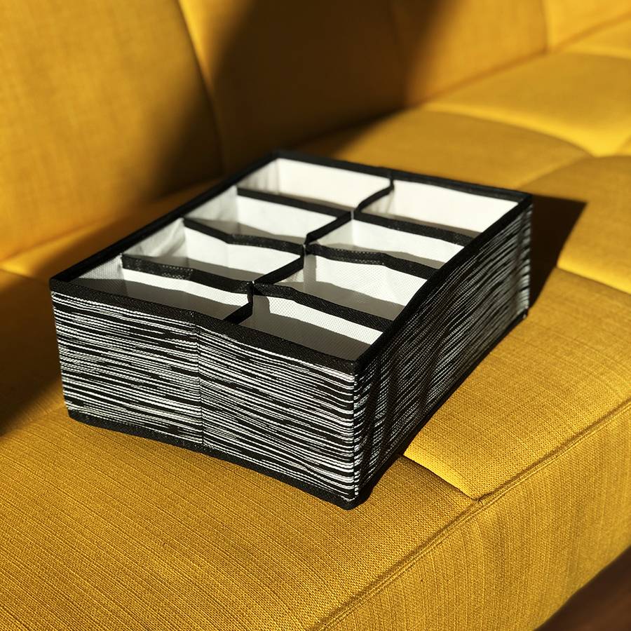 Органайзер отлично подойдет для хранения ремней, шарфов, платков, носков и т.п. Теперь каждая вещь будет на своем месте и не затеряется на полке. Имеет 8 ячеек одинакового размера, хорошо держит форму. Одним из достоинств органайзера является то, что он выполнен из спанбонда. Это прочный, дышащий и экологический материал. Благодаря своему цветовом решению и дизайну прекрасно впишется в любой интерьер. Вес: 136 г Материал: спанбонд Размер упаковки: 30х12х2 см Размер товара: 31х24х11 см Страна: Россия