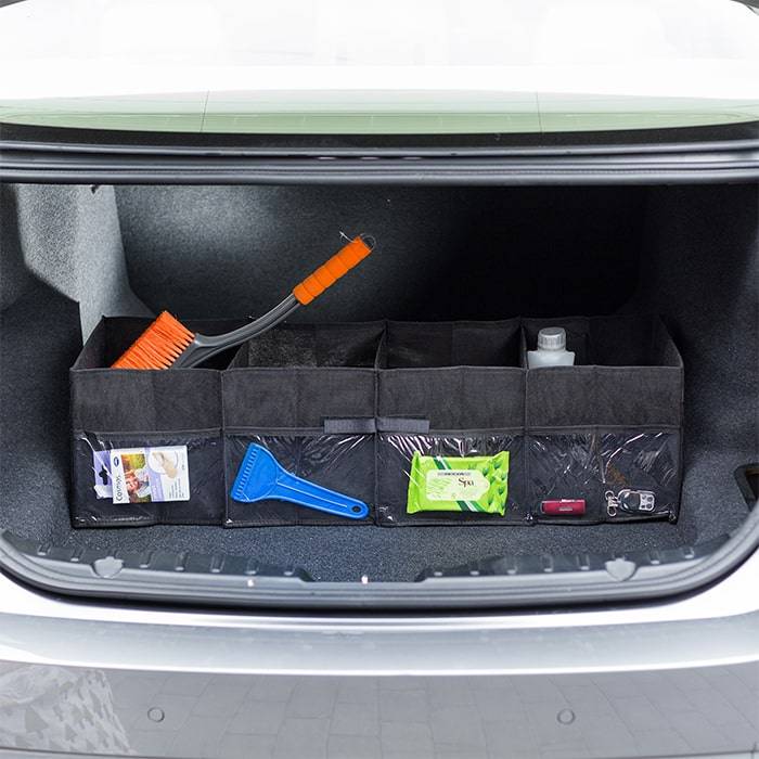 Планируете переезд? Или просто любите накупить много вещей или продуктов и поместить все в багажник? В любом случае, Вам точно пригодится такая вещь как органайзер на 4 отделения для машины. Занимает мало места, вмещает мелкие вещицы, при этом экономя пространство для больших предметов . Секции разного размера, что позволяет хранить футболки, тарелки, ложки, еду и прочее.