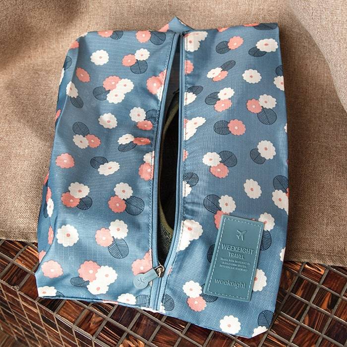 Легкий и тонкий чехол удобно вмещает в себя одну пару обуви. Удачная альтернатива целлофановым пакетам. Чехол не проницаемый для влаги и грязи. Имеется ручка для переноски!