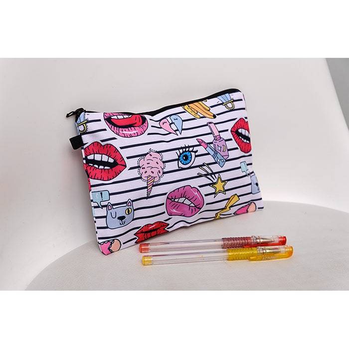 Косметичка-пенал «Glamour» станет вашим любимым аксессуаром благодаря ее удобству. Но одним из ее основных достоинств является оригинальный яркий и ироничный принт, который ни за что не останется незамеченным. Используйте сумочку как косметичку, либо сложите в нее канцелярские принадлежности, необходимые для учебы или работы, а когда она станет не нужна, просто сверните и уберите в любой самый небольшой кармашек.