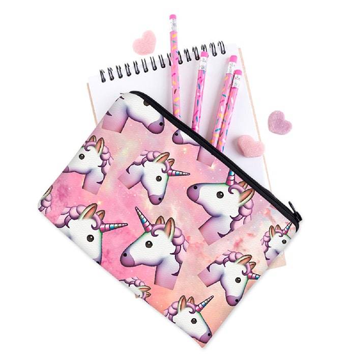 Ваша юная принцесса обязательно полюбит делать уроки, если ее канцелярские принадлежности будут храниться в великолепной косметичке-пенале «Unicorn». Очаровательные единороги, изображенные на нем, помогут без труда выучить таблицу умножения или спряжения глаголов. А девушки постарше смогут хранить в косметичке-пенале пудреницу или любимую губную помаду.