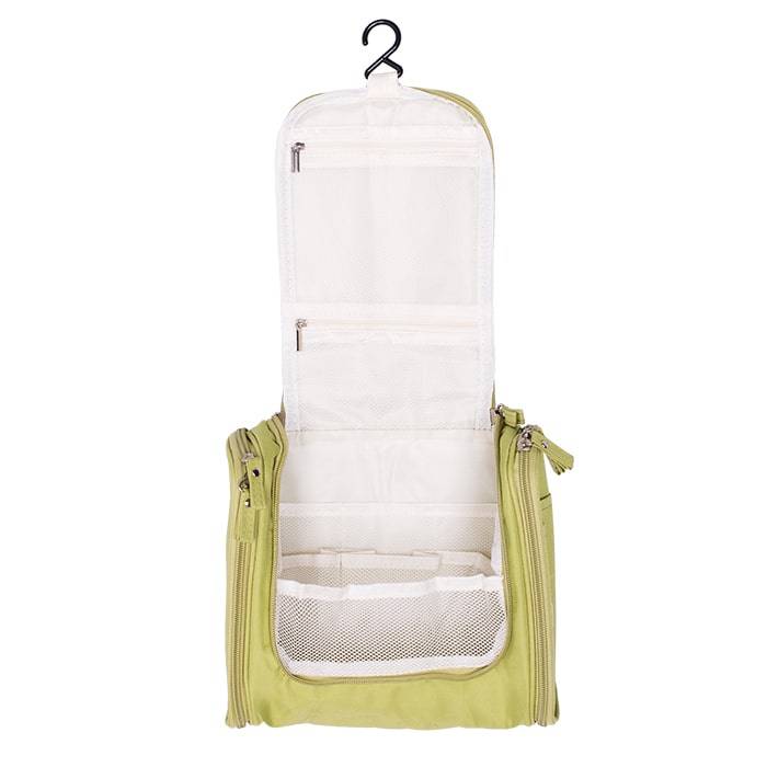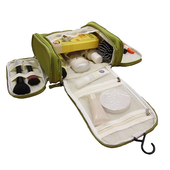 Собрать необходимые гигиенические средства, которые не потеряются при транспортировке, поможет подвесная косметичка-органайзер. Компактный аксессуар отлично подойдет для разного рода мелочей, косметики по уходу, лекарств, туалетных принадлежностей и т. д. Удобно вешать где угодно, используя надежный крючок. В сложенном виде выглядит как небольшая сумочка с ручкой.