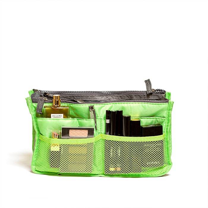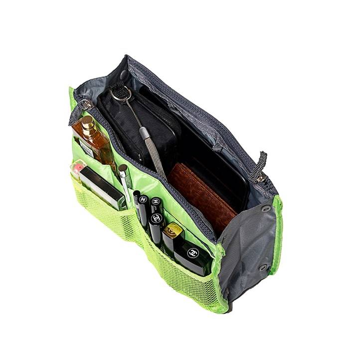Этот органайзер для сумки благодаря трем вместительным отделениям для вещей, четырем кармашкам по бокам и шести кармашкам в виде сетки обеспечит полный порядок в вашей сумке. Кроме того, изделие обладает интересным стилем, выполнено в зеленом цвете и оснащёно двумя крепкими ручками, что позволяет применять его и вне сумки, как отдельный аксессуар.