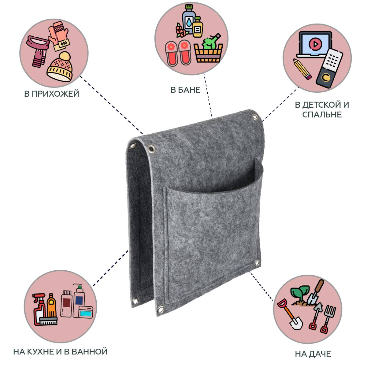 Перекидной органайзер с 2 карманами, фетр (26х66 см)