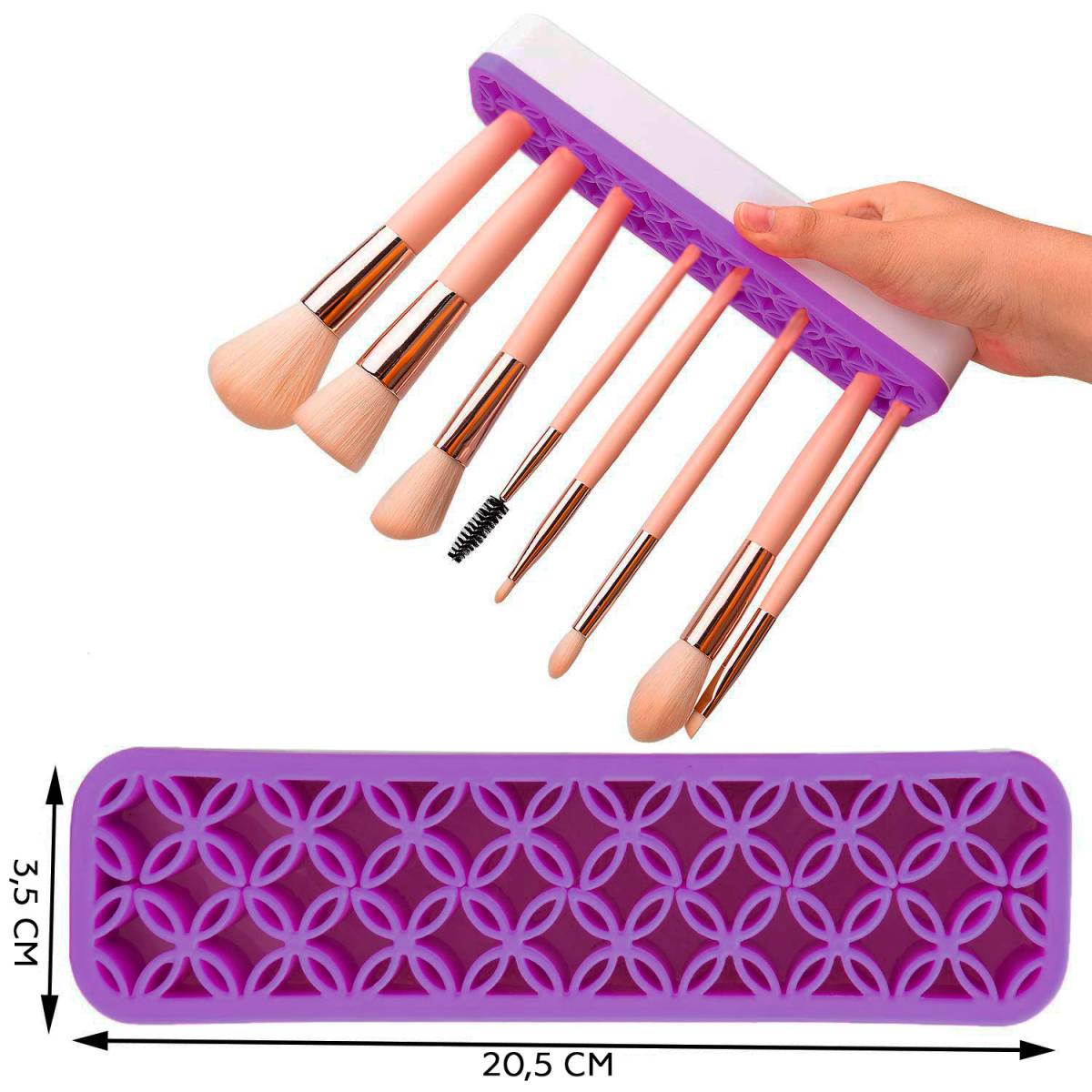 Подставка прекрасно впишется в ванную комнату для хранения зубных щеток и пасты. Каркас сделан из прочного пластика и силиконовой вставки с отверстиями различной формы. Благодаря чему так же идеально подойдет для хранения кистей маленьких и больших размеров, помады, блесков, туши или других косметических принадлежностей. Можно хранить различные украшения и аксессуары, например, кольца, заколки, маникюрные принадлежности.