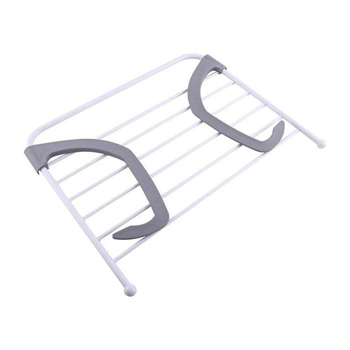 Подвесная сушилка на радиатор — это компактное и практичное приспособление для просушки белья. Установка на радиатор выполняется при помощи двух пластиковых держателей-крюков, надежно фиксирующих сушилку на батареях. После просушки держатели легко складываются и изделие становится плоским и удобным для хранения.