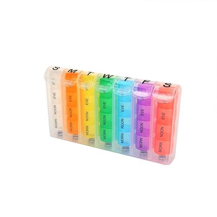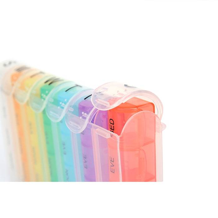 Во время лечения на дому, очень важно не забывать принимать таблетки. И также важно их не перепутать, иначе можно усугубить ситуацию. Чтобы навести порядок в своих медикаментах, и красиво их разместить, достаточно приобрести универсальный органайзер «Радуга». Разделен на 28 секций, что позволит поместить всю аптечку. Крышки плотно закрываются, так что содержимое не перепутается.