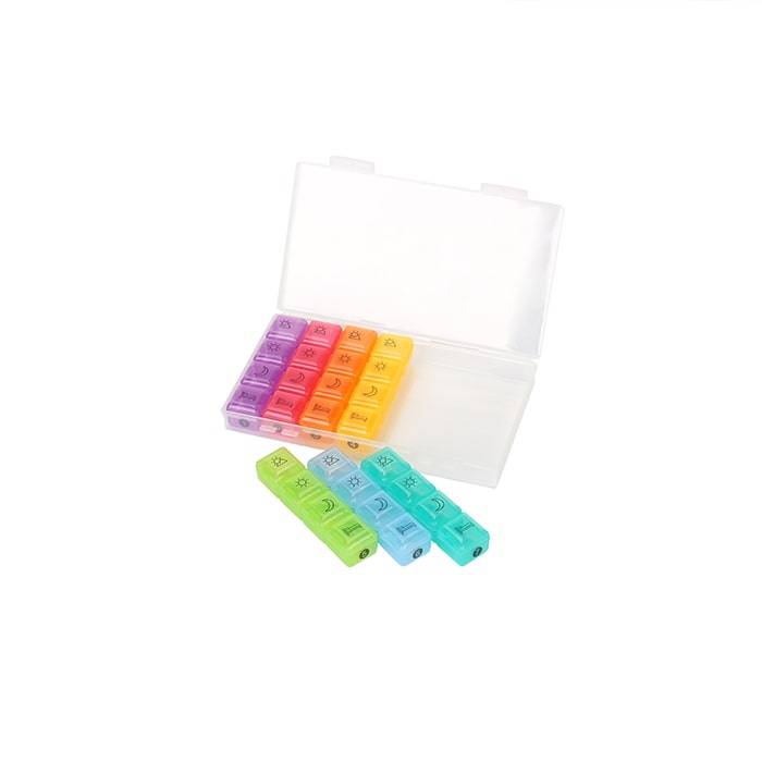 Надоел постоянный беспорядок в аптечке? Медикаменты разбросаны, рассыпались упаковки и прочее? Отличным решением проблемы станет приобретение таблетницы «Тетрис 2». Это универсальная вещь, разделенная на семь отделов. Каждый отдел разделен еще на четыре секции, что помогает вместить много различных лекарств. Каждую коробочку можно отдельно подписать или наклеить обозначения, чтобы не забыть состав содержимого.