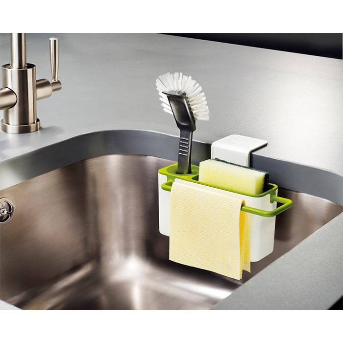 Органайзер для кухонных губок, салфеток и щеток, крепится в раковину при помощи присоски.