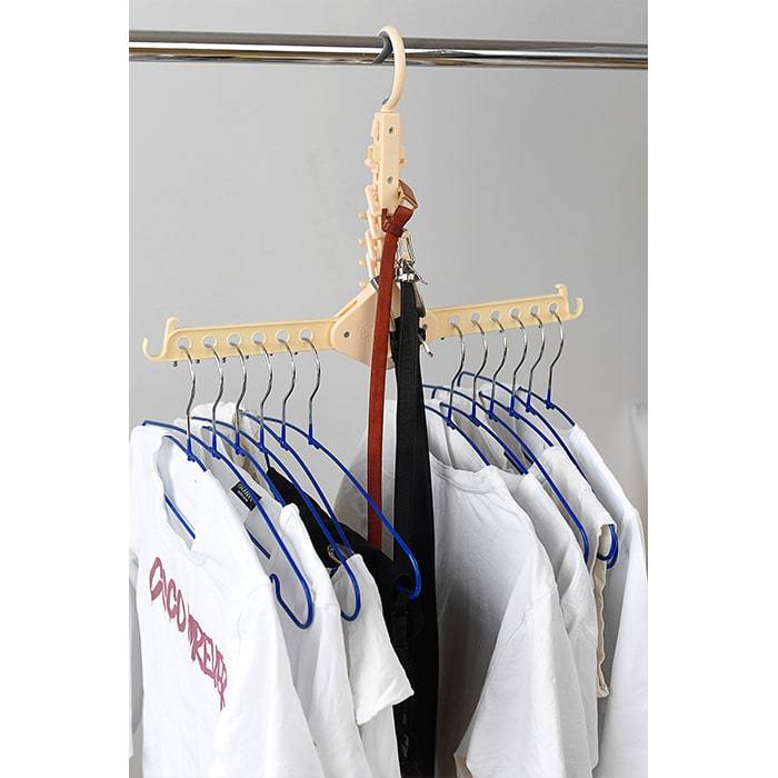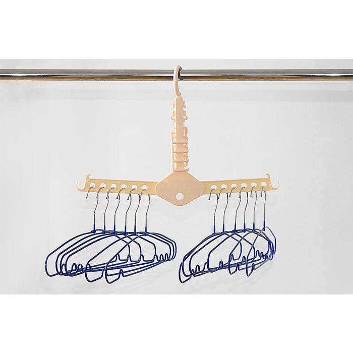 Мало места в шкафу? Вещей собралось столько, что ломятся полки? Если не выбрасывать одежду, то, что делать? Можно побежать и купить новую мебель, но это будет значительно дороже, чем приобрести универсальный органайзер для вешалок. Органайзер представлен в виде вешалки с дополнительными плечиками и отверстиями в основании. В отверстия можно добавить еще плечики, и получится большое количество одежды в одном месте.